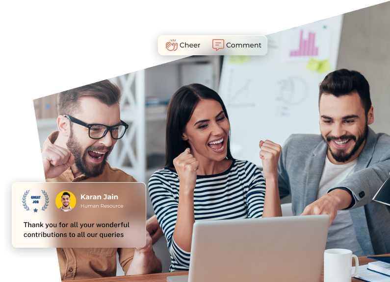 Managers can publicly appreciate and reward their team's excellence on the vibrant company wall.